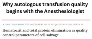 Anesthesiologists play a pivotal role in ensuring the quality of autologous transfusion. With real-time awareness, they adapt collection and wash parameters, even in complex or suboptimal surgical conditions, to uphold transfusion standards and protect patient outcomes.